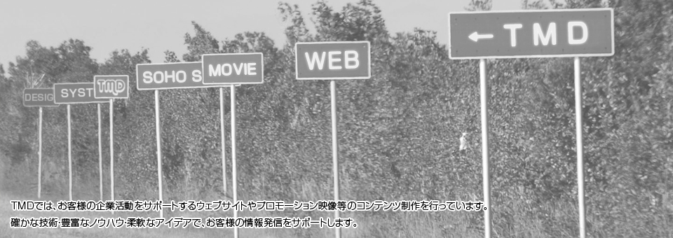 TMDでは、お客様の企業活動をサポートするウェブサイトやプロモーション映像等のコンテンツ制作を行っています。